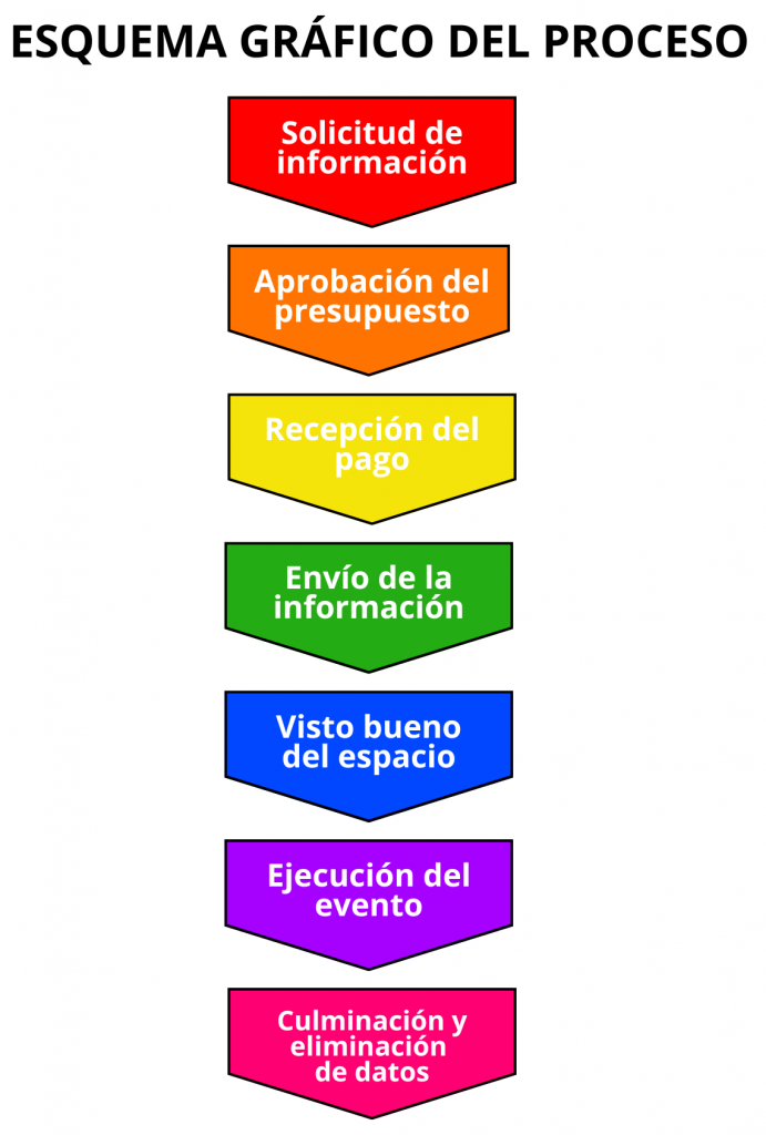 c.- El interesado luego de confirmar el presupuesto o ajustarlo, realiza el pago como máximo, 7 días antes de la realizción del evento. Es condición obligatoria haber recibido el 100% del pago 7 días ntes del evento para avanzar en el proceso.
